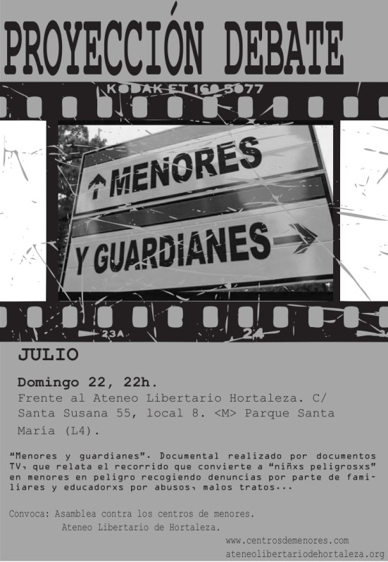 Domingo 22 de Julio a las las 22:00 enfrente del Ateneo Libertario de Hortaleza, C/Santa Susana 55, local 8. Metro Parque de Santa María.