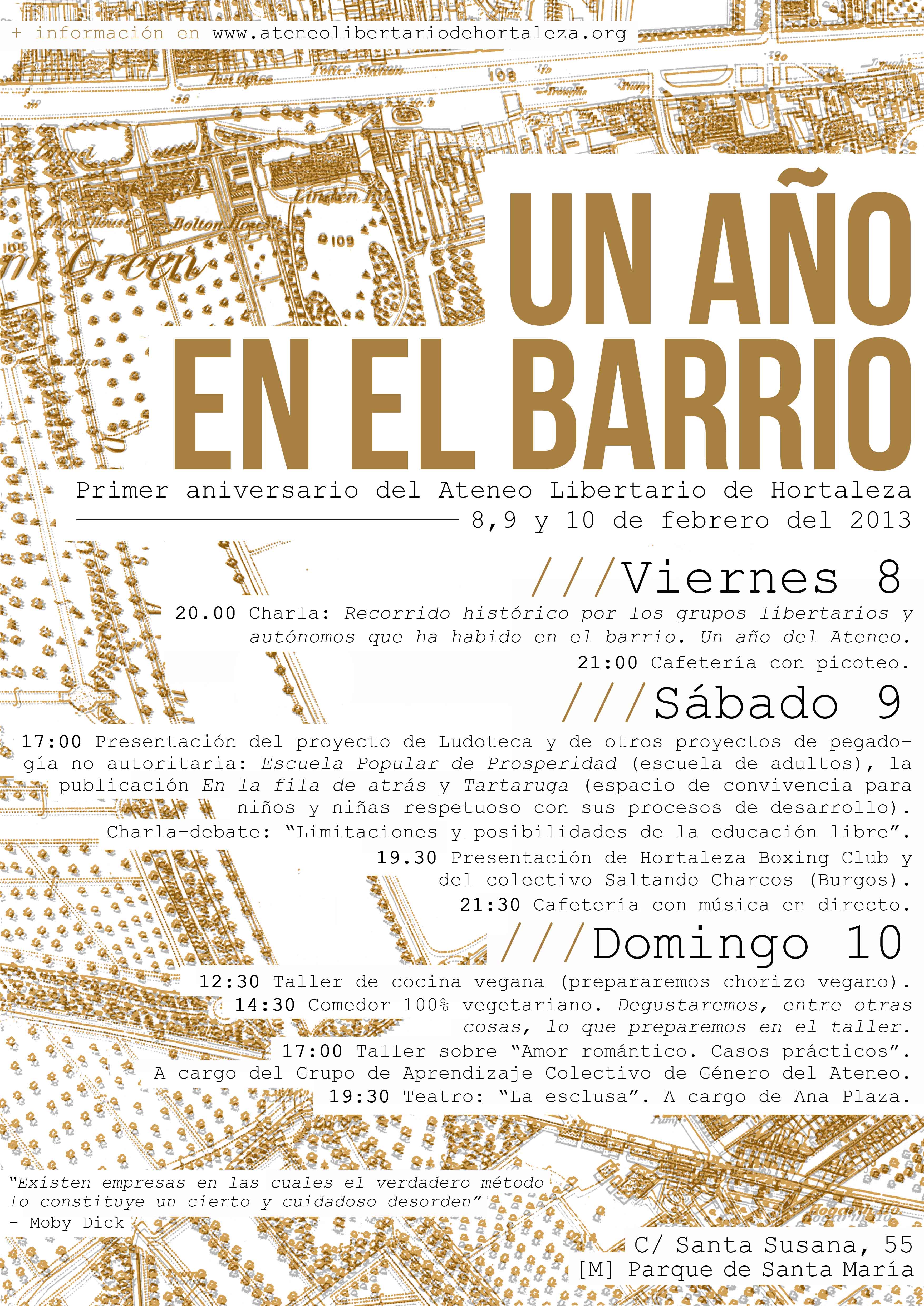 Charla: Recorrido histórico por los grupos libertarios y autónomos que ha habido en el barrio. Un año del Ateneo Libertario de Hortaleza.
